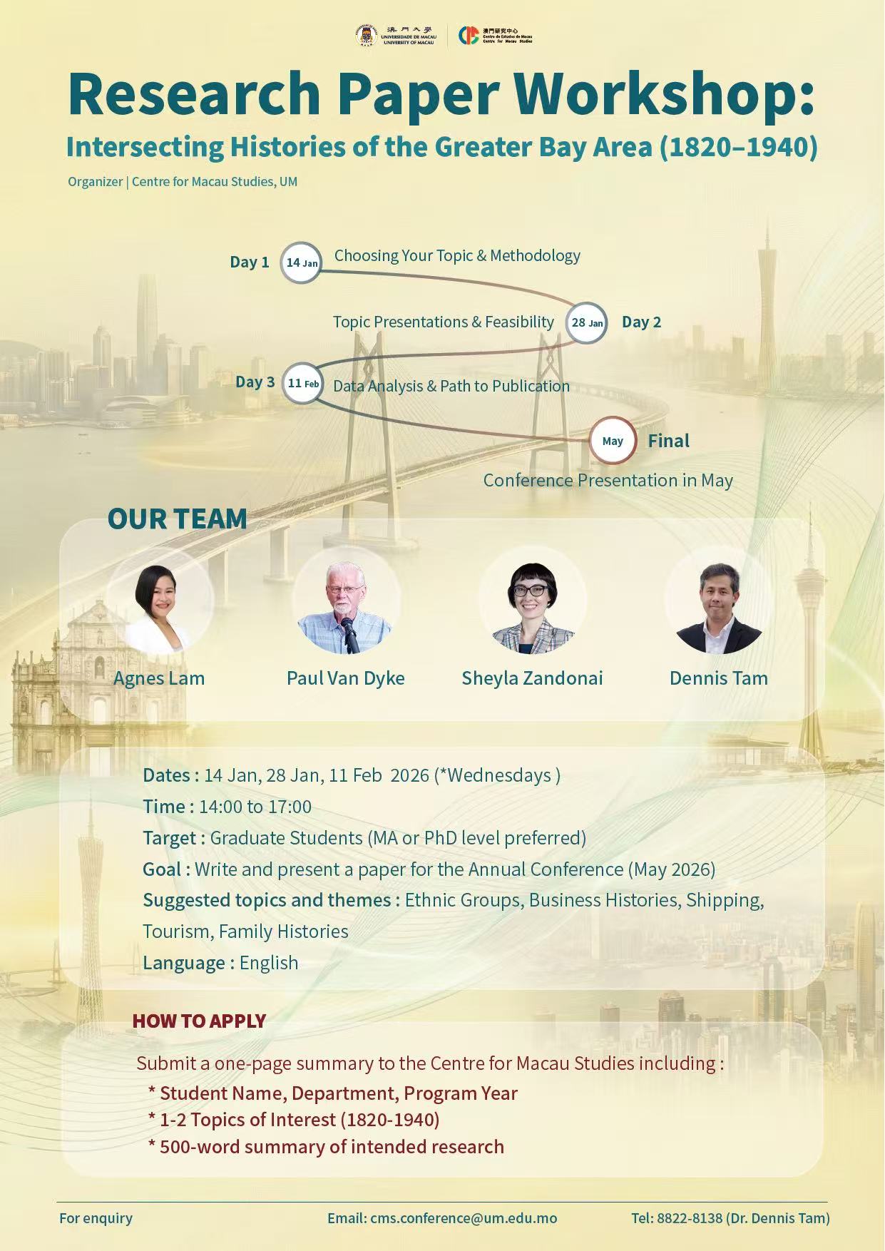 Students must complete the application form, in which the applicant is required to submit a summary, and return it to cms.conference@um.edu.mo before 12 January 2026. -